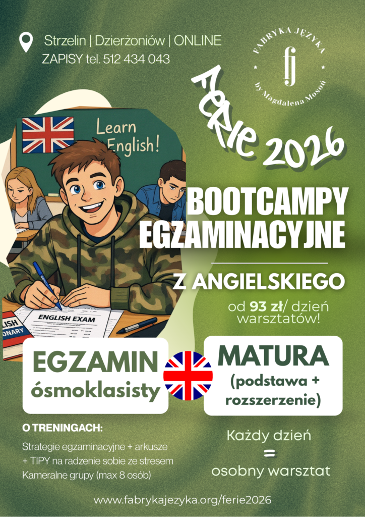 Dlatego w Fabryce Języka przygotowaliśmy Bootcampy Egzaminacyjne Ferie 2026 – intensywne warsztaty, które łączą trening językowy, egzaminacyjny i mentalny.